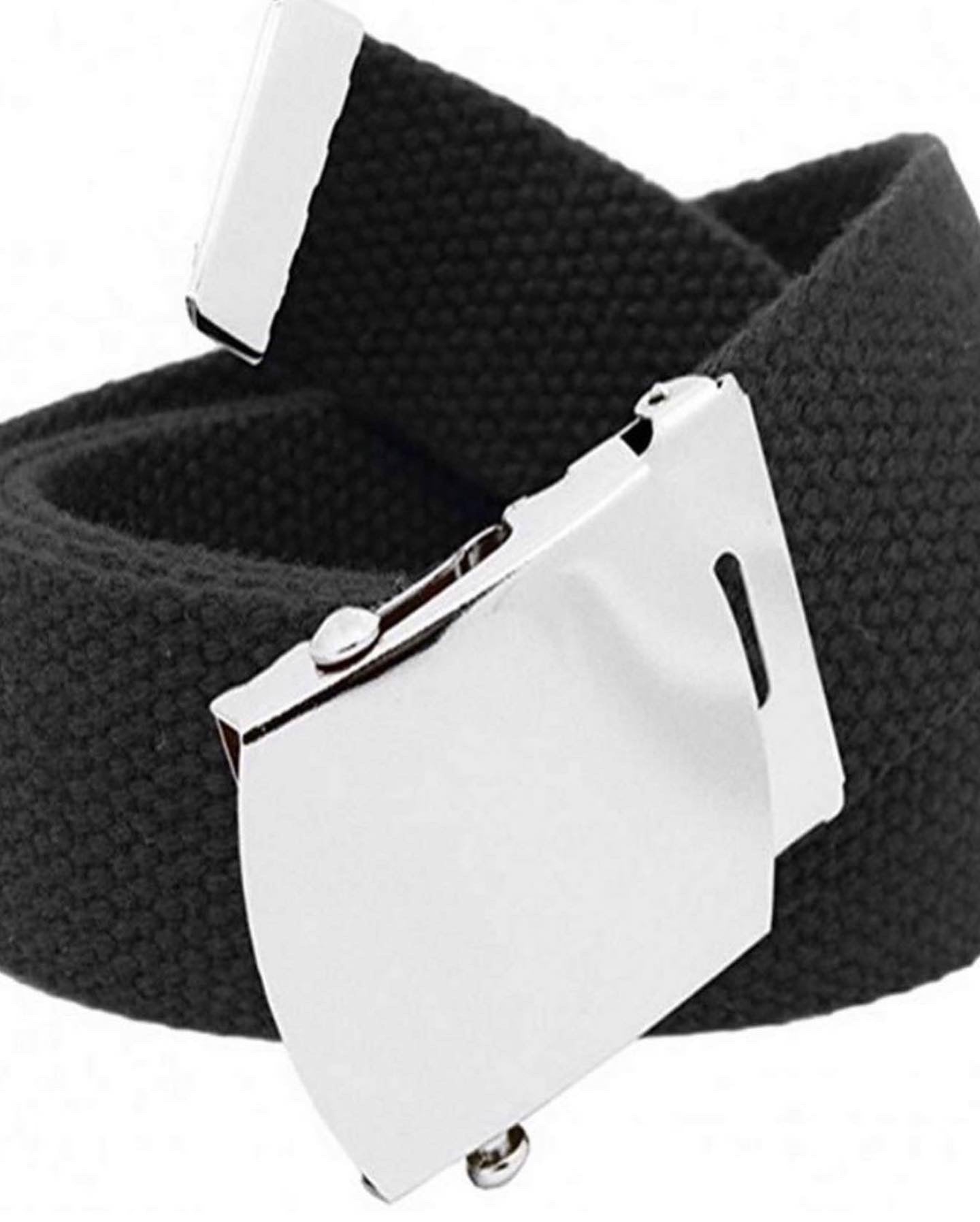 Silver nickel 1.25" wide slider rolling pin style buckle with canvas web belt